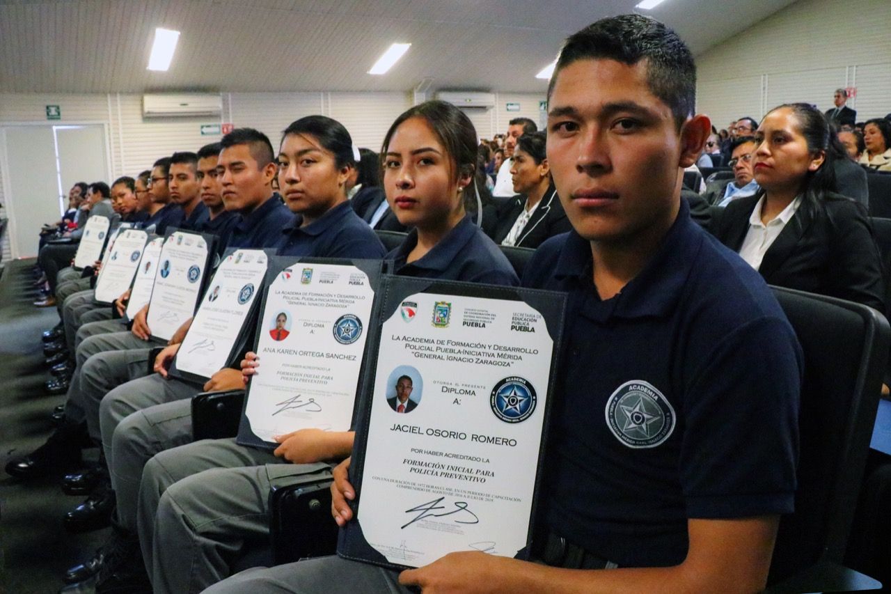 Este jueves, se llevó a cabo la ceremonia de clausura de la Academia de Formación y Desarrollo Policial Puebla-Iniciativa Mérida “General Ignacio Zaragoza”, donde 124 alumnos recibieron certificados, 97 de ellos por concluir su formación inicial para policía preventivo y por finalizar la cuarta generación del Bachillerato con profesionalización técnica en Seguridad Ciudadana, mismos que se incorporarán a las filas de Seguridad Pública; además, 27 alumnos concluyeron su Maestría en Seguridad Pública.