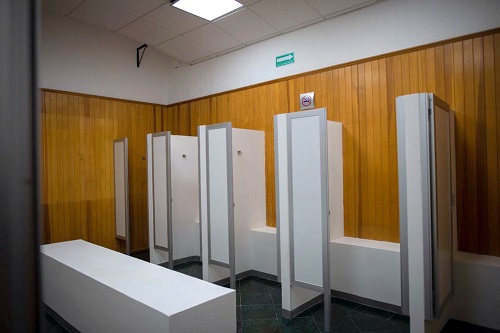 En la planta baja del edificio EST2 hay nueve vestidores para el área de posgrado. A la instalación eléctrica de la zona del edificio intervenido se le dio mantenimiento correctivo y preventivo. En cada vestidor se colocó un gancho metálico de sobreponer, las mamparas son de aluminio; además disponen de película anti-estallido y mosquiteros.