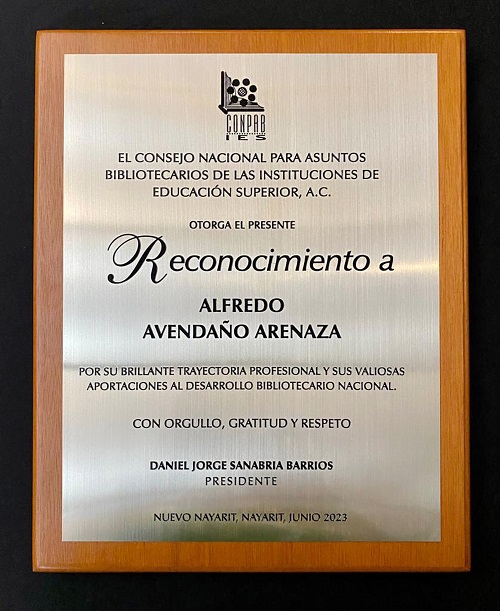 Así también, a la rectora de la Universidad Autónoma de Nayarit, Norma Galván Meza, “quien apoya este tipo de reuniones entre bibliotecarios y además por la entrega de esta medalla al maestro Alfredo Avendaño, un universitario muy querido por toda la comunidad, que le ha dado otra vida y otra cara a cada uno de los espacios destinados a apoyar a nuestros estudiantes, a través de una biblioteca que pone a su alcance el mundo maravilloso de los libros y de la información”.