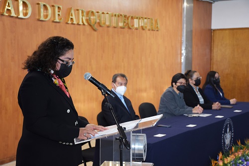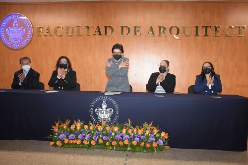 Al presentar su informe, Carola Santiago Azpiazu dio cuenta de los logros en el manejo de los recursos, vinculación con la sociedad y consolidación académica de la Facultad de Arquitectura, cuya matrícula es de 4 mil 825 estudiantes, de ellos 4 mil 751 corresponden a tres programas de licenciatura y el resto al posgrado.