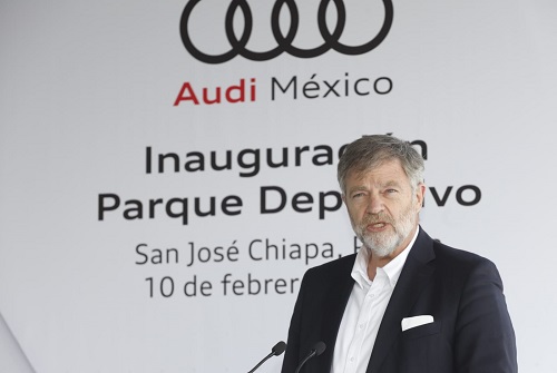 La entrega del parque deportivo al Ayuntamiento de San José Chiapa muestra el compromiso de Audi para reforzar los valores sociales, apuntó el embajador de la República Federal de Alemania en México, Wolfgang Dold.