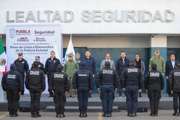 Al encabezar la ceremonia de honores a la bandera y el pase de lista de las y los elementos de la Policía Estatal Preventiva, el gobernador del Estado Alejandro Armenta, destacó que la primera tarea del Estado, es honrar y respetar las leyes para que los cuerpos de seguridad hagan lo propio por amor a Puebla.