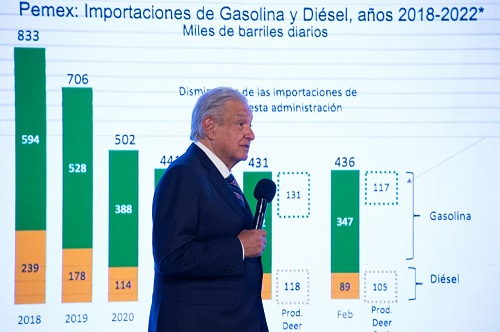 ‘Nosotros producimos petróleo. No todos los países en el mundo producen petróleo, de todos los países deben de producir petróleo alrededor de 20 (…) y ahora por la invasión de Rusia a Ucrania y todas las medidas que se están tomando, como castigo a Rusia, el decidir no comprara petróleo ruso’. Acotó.
