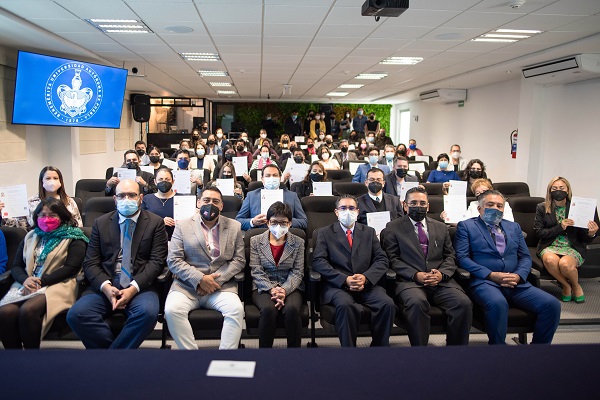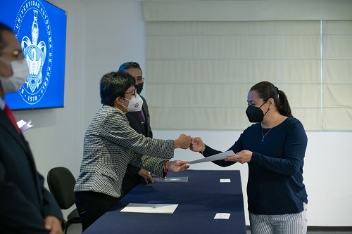 En el Aula Inteligente de la Facultad de Administración, la doctora Cedillo presidió la entrega simbólica de 10 certificados a docentes y 10 a estudiantes, de un total de 48 y 78 certificaciones, respectivamente.