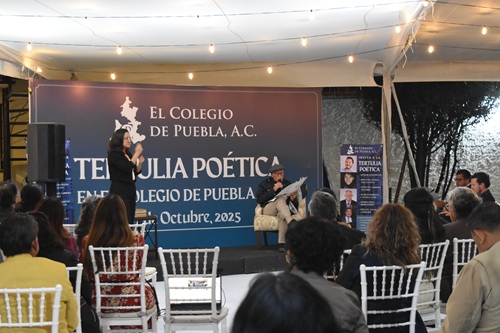 Siguiendo la línea de Cultura de Paz promovida por la Dra. Claudia Sheinbaum Pardo, presidenta de México, e impulsando la creación de espacios seguros, creativos y abiertos para la comunidad académica, artística y social, El Colegio de Puebla, A.C., realizó la primera edición de la Tertulia Poética, en pro del fortalecimiento del tejido social a través del arte y la palabra.