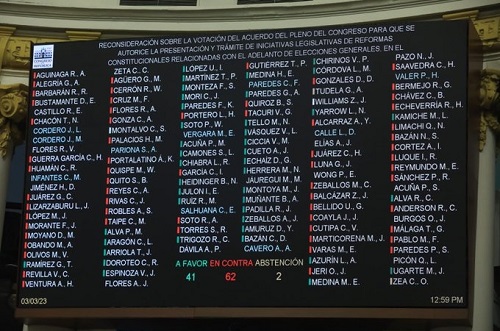 La propuesta para retomar la iniciativa de comicios anticipados fue votada en plenaria del parlamento y solo consiguió 41 votos a favor, 62 en contra y 2 abstenciones.