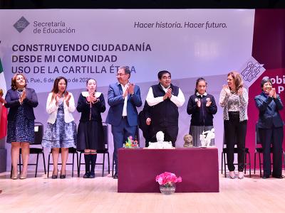 Al presidir el concurso “Construyendo Ciudadanía desde mi Comunidad, uso de la Cartilla Ética”, que organizó la Secretaría de Educación, el gobernador Miguel Barbosa Huerta convocó a los diferentes sectores de la sociedad a trabajar, de manera conjunta con los diferentes órdenes de gobierno, para recuperar la paz y seguridad en el estado, luego de señalar que las y los poblanos son personas valiosas, por lo que requieren que sus autoridades trabajen por mejorar las condiciones en la entidad.
