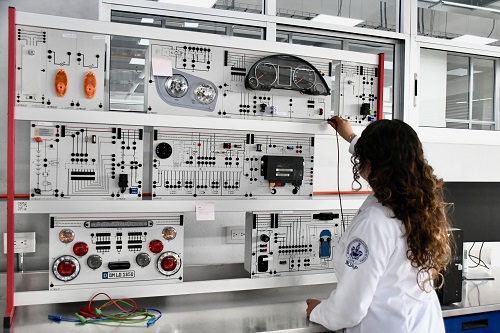 Entre estos recursos sobresale una cabina de extracción de gases importada de Alemania, completamente automática y con filtros de alta precisión que aseguran una operación segura para los usuarios. En el Laboratorio Automotriz, los estudiantes disponen de dispositivos de monitoreo de partículas, pantallas térmicas y monitores para el análisis en tiempo real de emisiones y funcionamiento vehicular.