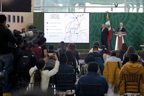 El AIFA, subrayó, ‘es testimonio del carácter y la determinación del Presidente Andrés Manuel López Obrador, de su convicción por dar a sus decisiones un sentido social. El Presidente eligió proyectos emblemáticos a realizar a lo largo de su administración y es un orgullo que uno de ellos esté aquí en el Estado de México’.