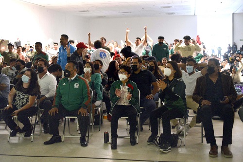 La rectora María Lilia Cedillo Ramírez convivió con jóvenes universitarios en el Centro de Convenciones de CU y observó el desarrollo del encuentro deportivo, que provocó emociones en todos los asistentes.