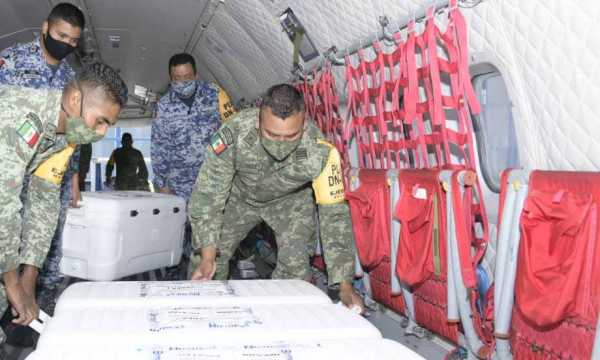 Asimismo, con el apoyo de la Fuerza Aérea Mexicana fueron distribuidas vía aérea un millón 117 mil 650 dosis a los estados de Baja California Sur, Baja California, Sonora, Sinaloa, Chihuahua, Oaxaca y Yucatán.