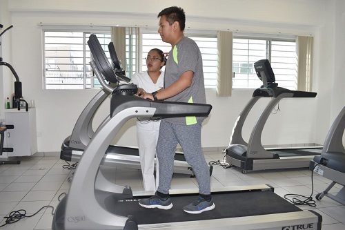 Landeros Olvera, quien recibió el Reconocimiento al Mérito en Enfermería ‘María Guadalupe Cerisola Salcido’ 2022 por el Consejo de Salubridad General, explicó que esta dosis de ejercicio es gradual y progresiva para personas con sobrepeso y obesidad; se realiza en caminadoras y en cicloergómetro, este último para aquellos con problemas de rodilla. De igual manera, esta rutina puede trasladarse a escenarios de parques y pistas públicas como una medida para mejorar la salud y el sistema inmunológico.