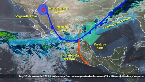 La tercera tormenta invernal dejará lluvias en el norte, y el frente frío hará lo propio en el centro, este y sureste del país.
