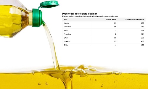 En América Latina la inflación del aceite en el último año cubre un rango muy amplio que va desde un 9% en Bolivia, a más de 60% en países como Costa Rica.