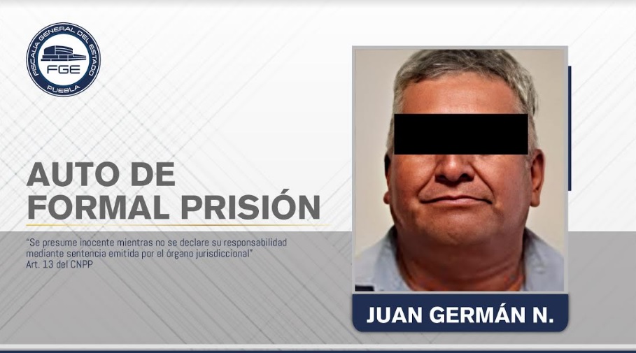 Posteriormente el 14 de mayo de 2020 durante audiencia ante el Juez de Control, la Fiscalía de Puebla aportó datos de prueba que permitieron obtener auto de formal prisión contra Juan Germán N.