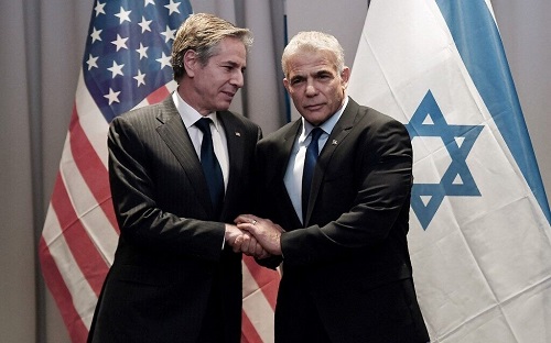 ‘Todos estamos comprometidos y decididos a hacer que Irán nunca obtenga armas nucleares’, subrayó Blinken en una rueda de prensa en Jerusalén junto a Lapid.