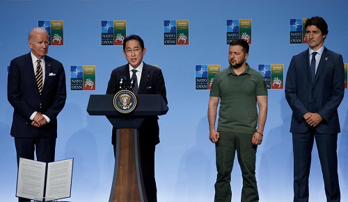 Los países del G7 aprobó este miércoles una declaración conjunta sobre la ayuda a Ucrania en la que se comprometen a ofrecer un apoyo militar ‘duradero’ a Kiev. El documento fue presentado por los líderes del grupo, que incluye al Reino Unido, EE.UU., Japón, Canadá, Francia, Alemania e Italia, durante la cumbre de la OTAN que se celebra en la capital lituana, Vilna.
