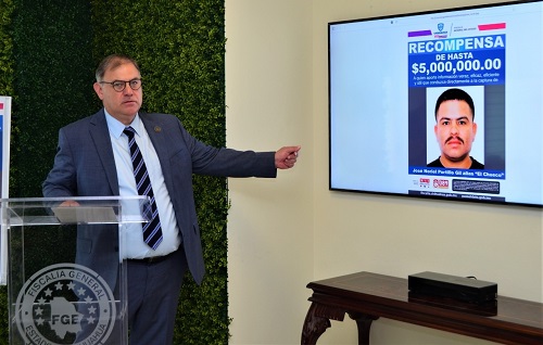 El fiscal también dio a conocer que emitieron una ficha para ofrecer una recompensa de hasta 5 millones de pesos a quien o quienes aporten información que lleve a la aprehensión de José Noriel Portillo Gil.