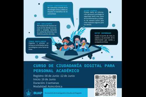 Para brindar buenas prácticas para las clases en línea, la BUAP impartirá el Curso de Ciudadanía Digital para Personal Académico. Al respecto, el coordinador General de Capacitación de la Institución, Oscar Gilbón Rosete, señaló que este curso busca sensibilizar al profesor sobre las dificultades de los alumnos para conectarse a las clases, una mala conexión a Internet, por ejemplo; además, cómo ser incluyente y crear una sensación de calidez con los alumnos, entre otros aspectos que beneficien directamente a los estudiantes.