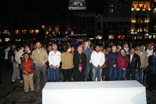 Acompañado por la presidenta del SMDIF, MariElise Budib; el titular de la Secretaría de Economía y Turismo, Jaime Oropeza, así como del secretario de Servicios Públicos, Clemente Gómez y el arzobispo de Puebla, Victor Sánchez, disfrutó de esta proyección.