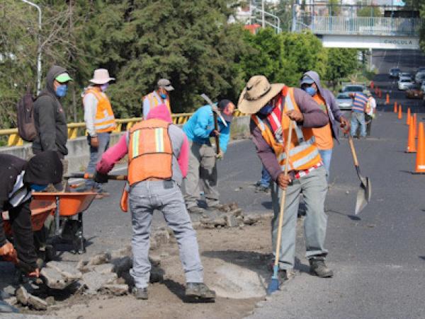La Secretaría de Infraestructura realiza trabajos de bacheo emergente en ambos sentidos de la Recta a Cholula.