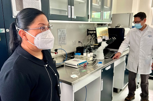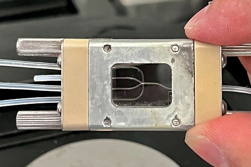 La doctora Claudia Mendoza Barrera detalló que la celda microfluídica es un vidrio o lámina de polímero con canales de diferentes formas. Dentro de estos, se inyectan las diferentes soluciones de interés y al final de la celda se recolectan las estructuras deseadas. En este caso, dentro de la celda se generaron micelas: una especie de burbujas o partículas grandes que sirvieron como centro de nucleación para fabricar estas nanoestructuras ya fuera de ella. Esta ruta de síntesis permite abaratar costos de fabricación de nanoestructuras, porque no fue necesario utilizar salas blancas.
