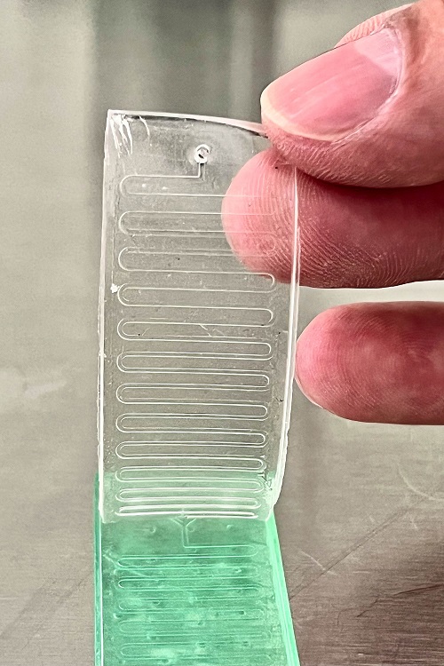 Después de la selección de polímeros, se diseñaron celdas microfluídicas para la síntesis de estas nanoestructuras, tal que tuvieran el mismo tamaño, lo que permitirá establecer dosis específicas. Pocos grupos de investigación en el país se dedican al área de microfluídica, un campo con gran potencial de desarrollo nacional.