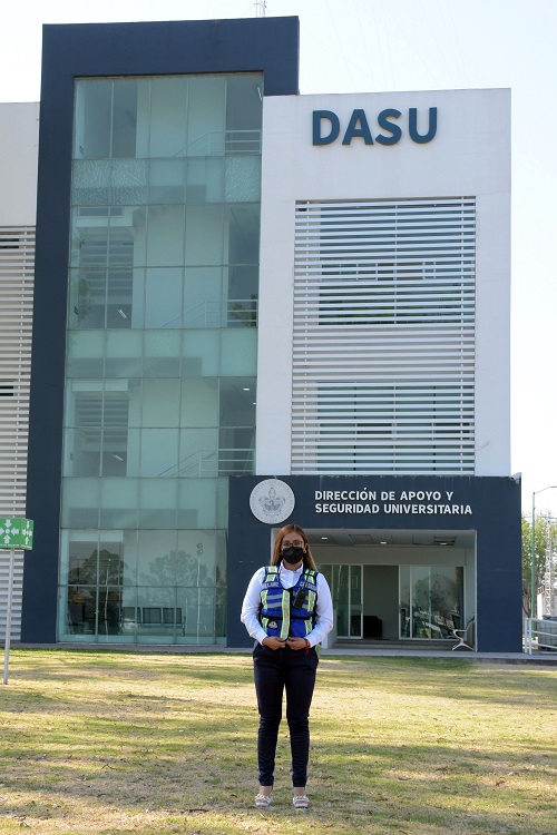 La inseguridad pública que se vive en las calles de la urbe la motivó a integrarse a la Dirección de Apoyo y Seguridad Universitaria (DASU), donde se inició como monitora; más tarde, su desempeño la llevó a una carrera laboral siempre en ascenso: tras su primer cargo pasó a ser supervisora, después coordinadora y hoy jefa de la central, desde donde ha mejorado los protocolos de seguridad para brindar tranquilidad a la comunidad universitaria.