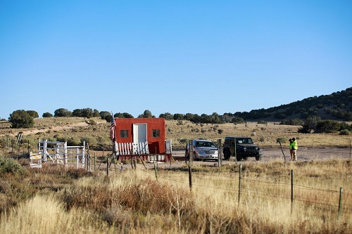 Law enforcement vehicles were seen cordoning off a film set in Santa Fe, New Mexico, after a prop firearm discharged by Alec Baldwin killed cinematographer Halyna Hutchins.