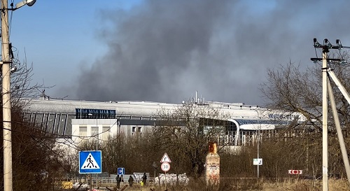 En Leópolis el humo negro persistía horas después de las explosiones, que alcanzaron unas instalaciones de reparación de aviones militares cerca del aeropuerto internacional de la ciudad, a apenas seis kilómetros del centro. Una persona resultó herida, dijo el jefe del gobierno de la región, Maksym Kozytskyy.
