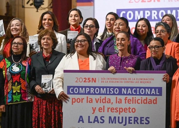 La poblana Olivia Salomón acudió a la conferencia de prensa de la presidenta Claudia Sheinbaum, donde se ratificaron los compromisos del gobierno federal y gobernadores en la lucha contra la violencia hacia las mujeres.