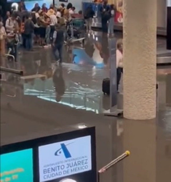 El Aeropuerto Internacional de la Ciudad de México (AICM) se vio afectado por un colapso en sus sistemas pluviales debido a una intensa lluvia que causó daños en desagües y plafones de la Terminal 1, además de encharcamientos en la pista 05L/23R, que fue cerrada temporalmente.