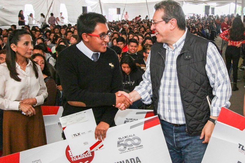 El Gobernador Marco Mena entregó este jueves mil 126 becas más del componente “Tu Prepa Terminada 2019” del Sistema Estatal de Becas en el municipio de Apizaco, luego de haber otorgado los apoyos en Zacatelco y Tlaxcala capital en semanas anteriores.