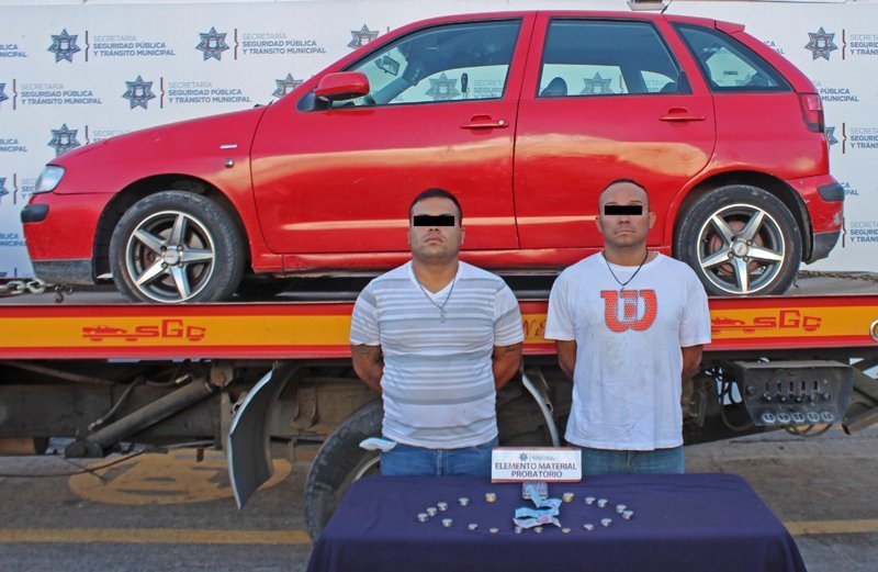 Policías Municipales implementaban labores de vigilancia sobre la Avenida San Francisco, cuando se percataron que el conductor de la ruta 33, unidad 43, solicitó ayuda para detener a dos hombres a quienes señaló como responsables de arrebatarle un teléfono celular y dinero en efectivo, para posteriormente intentar darse a la fuga a bordo de un vehículo Seat, Ibiza, color rojo.