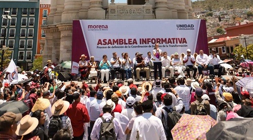 ‘Recorremos el país para hablar de la importancia de la Cuarta Transformación, de sus logros, para no dar un paso atrás, siempre un paso adelante por la transformación de nuestro país, con principios, con causas, porque nosotros no luchamos por un cargo, nosotros tenemos principios y valores’, aseguró Claudia Sheinbaum Pardo quien, en Pachuca, Hidalgo ofreció una asamblea informativa frente a militantes y simpatizantes.