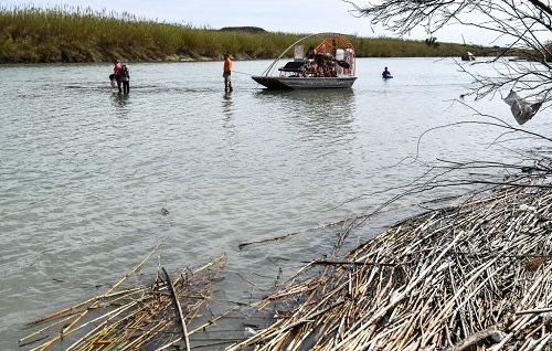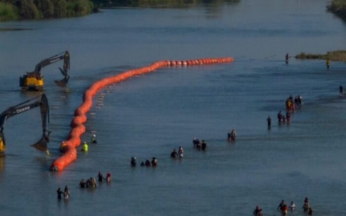 Barrera de boyas en el río Bravo