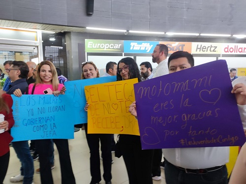 Previo a la conferencia, a su llegada a tierras regias, Sheinbaum Pardo fue recibida al ritmo de la música norteña en el aeropuerto Mariano Escobedo, donde algunos neoleoneses se dieron cita para mostrar su apoyo con carteles en los que se leían »Claudia es una bendición recibirte en Nuevo León, »Nuevo León contigo», entre muchos otros.