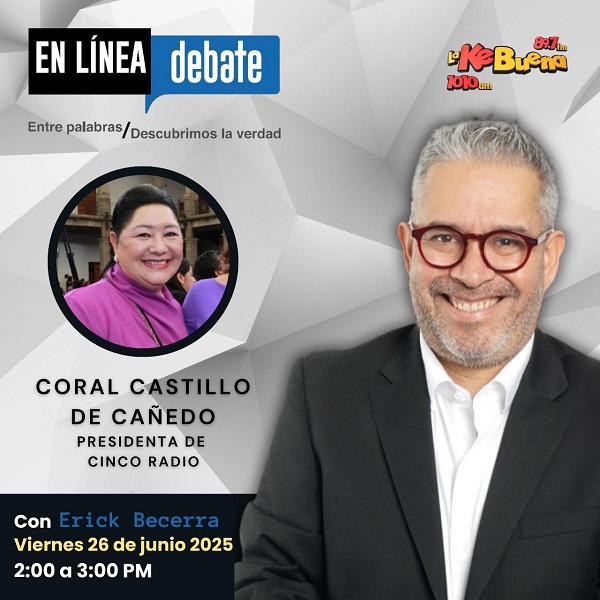 Este viernes, 27 de junio, estará con nosotros En línea debate de viernes, la Señora Coral Castillo de Cañedo, presidenta de Cinco Radio.