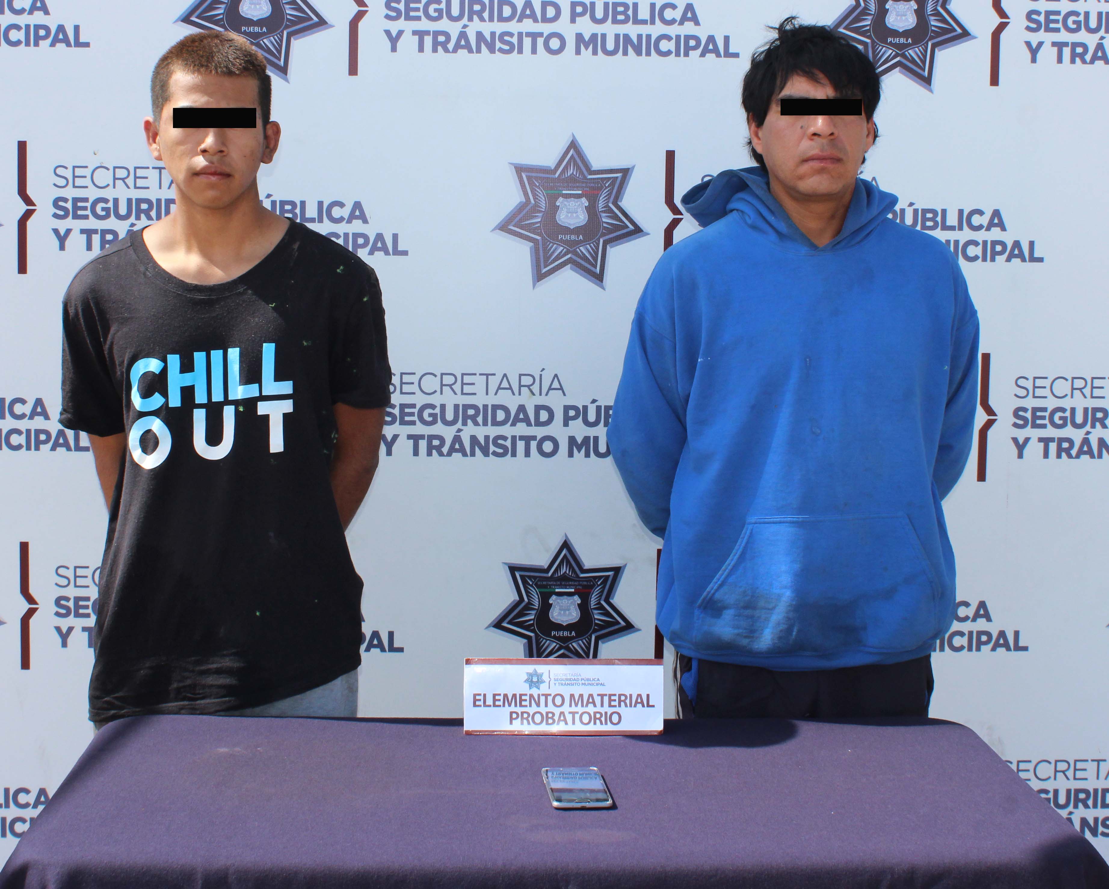 Policías Municipales del Sector Uno llevaban a cabo un patrullaje de vigilancia en la intersección de las calles Roble y Tejocote, en la colonia Amalucan, cuando se percataron que dos jóvenes solicitaron ayuda para detener a dos hombres, a quienes señalaron como responsables de robarles un teléfono celular en un parque de la zona.