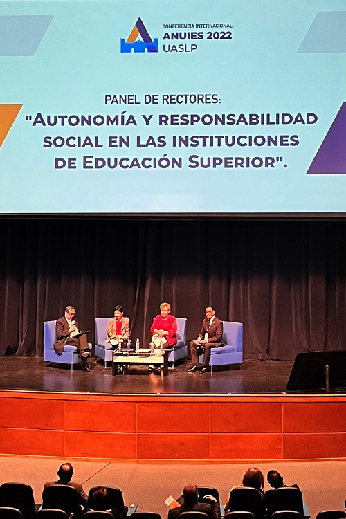 Lo anterior durante su participación en el panel de rectores ‘Autonomía y responsabilidad social en las instituciones de educación superior’, realizado durante la VIII Conferencia Internacional ANUIES 2022, en la Universidad Autónoma de San Luis Potosí.