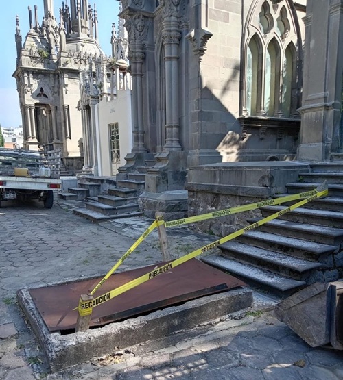Como parte de las acciones de mitigación, se reubicaron escombros que obstruían pasillos y, en coordinación con la administración de los panteones, se procedió al relleno de fosas en proceso de excavación para prevenir accidentes, a través del personal de la Dirección de Gestión de Riesgos en materia de Protección Civil de la Secretaría de Gestión y Desarrollo Urbano.
