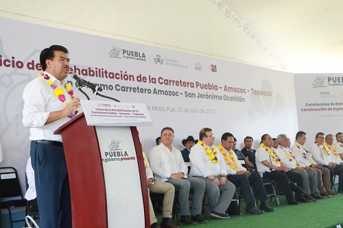 Como parte de las acciones que desarrolla el gobierno presente de Sergio Salomón para impulsar el desarrollo de la infraestructura urbana en la entidad, el secretario de Gobernación, Javier Aquino Limón, en representación del mandatario estatal, dio el banderazo de inicio de la rehabilitación de la carretera Puebla-Amozoc-Tepeaca, en el tramo carretero Amozoc-San Jerónimo Ocotitlán, obras que requerirán una inversión superior a los 46 millones de pesos.