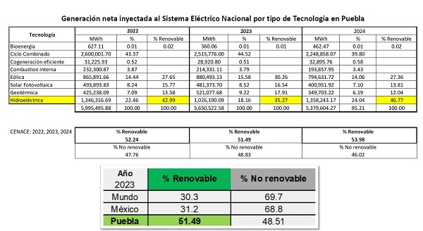 Más de la mitad de la producción de energía del estado de Puebla (51.49%) es renovable, lo que coloca a la entidad por arriba de la media nacional y del promedio mundial.