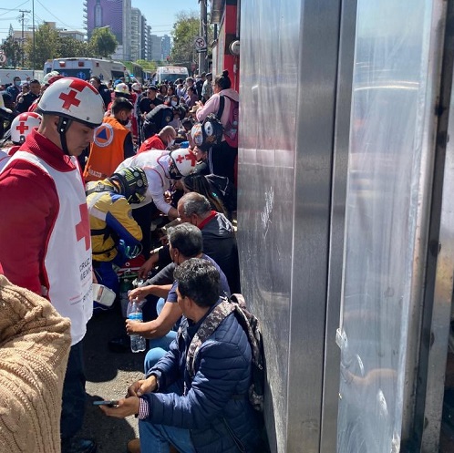 En la zona se encuentras elementos de la Guardia Nacional de la Policía Bancaria Industrial y del Heroico Cuerpo de Bomberos de la Ciudad de México.