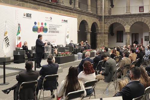 En el evento estuvieron presentes Carla Astrid Humphrey Jordán, consejera electoral del Instituto Nacional Electoral (INE); el consejero presidente del Instituto Electoral del Estado (IEE), Miguel Ángel García Onofre; el presidente de la Red Nacional de Consejeras y Consejeros Electorales por una Democracia Incluyente y Consejero Electoral del IEE, Jesús Arturo Baltazar y la vicepresidenta de la Asociación Mexicana de Consejeras Estatales Electorales A.C. y consejera electoral del estado de Baja California, Olga Viridiana Maciel Sánchez.