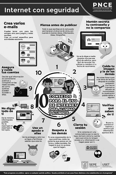La Secretaría de Educación Pública del Estado (SEPE) y la Unidad de Servicios Educativos de Tlaxcala (USET) promueven a través de las redes sociales 10 consejos para navegar en internet de manera segura, dirigidos a alumnas y alumnos de todos los niveles educativos.