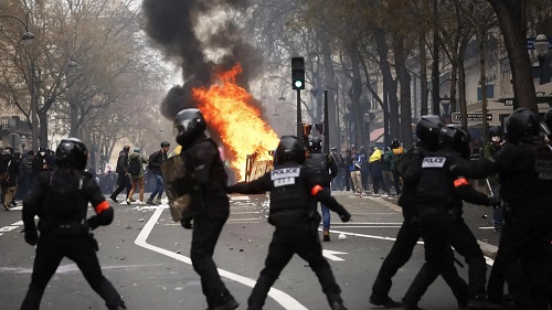 Al mismo tiempo, la capital del país, París, también sufrió actos de vandalismo e incendios del mobiliario urbano. Así, una tienda del fabricante de productos deportivos Nike fue atacada y saqueada. En relación con el caso, catorce personas han sido detenidas.