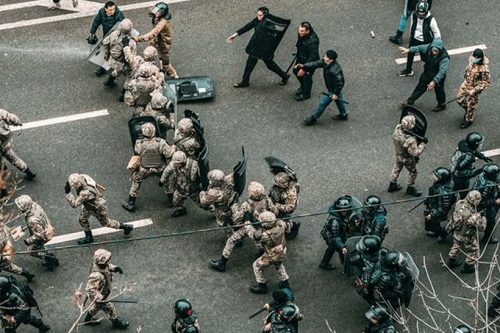A pedido de Tokayev, la Organización del Tratado de Seguridad Colectiva —una alianza militar de seis ex estados soviéticos liderada por Rusia—, autorizó el envío a Kazajistán de alrededor de 2.500 soldados, en su mayoría rusos, como fuerzas de paz.