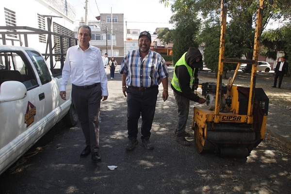 Durante la supervisión, el edil constató los avances de las labores de bacheo que se realizan en este punto estratégico, como parte de una intervención integral en diferentes zonas de la ciudad de Puebla, con lo que se atiende una de las principales necesidades de poblanas y poblanos.
