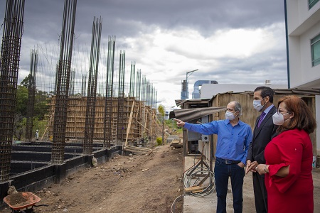 El rector Alfonso Esparza Ortiz supervisó la construcción de un nuevo edificio para la Escuela de Artes Plásticas y Audiovisuales (ARPA), el cual estará listo para el siguiente ciclo escolar, en compañía de la directora de esta unidad académica, Eloísa Shengli Chilián Herrera, y del director de Infraestructura Educativa, Jorge Antonio Rodríguez y Morgado.